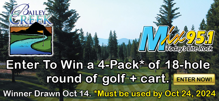 Qualify to win a 4-pack of tickets to Bailey Creek Golf, in Chester! *Vouchers must be used before closing of season - Oct 24, 2024