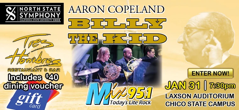 This concert features American composer Aaron Copland with his dramatic musical story of legendary outlaw Billy the Kid.