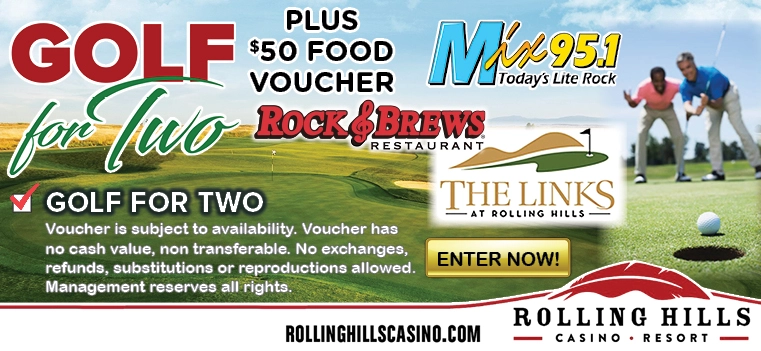 Play our sweepstake for a chance to win a voucher to play golf at The Links | Rolling Hills Casino Resort. Includes a $50 food voucher to Rock And Brews Restaurant.