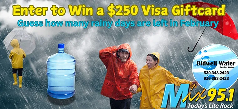 If one listener can guess the correct number of rainy days* left in February, MIX 95.1 will put you in the running for a chance at winning a $250 gift card.