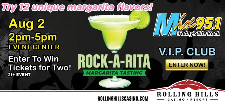 Try 12 unique margarita flavors! Taste margaritas from select venues within Rolling Hills Casino and Resort. Admission to the event includes a commemorative tasting glass!